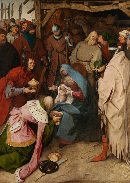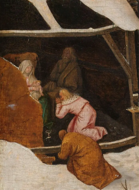 Питер Брейгель Старший, «Поклонение волхвов», 1564 // Питер Брейгель Младший, «Поклонение волхвов», 1630, фрагмент