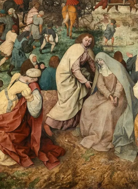 Питер Брейгель Старший, фрагмент, «Путь на Голгофу», 1564 // Питер Брейгель Младший, фрагмент, «Путь Христа на Голгофу», 1597