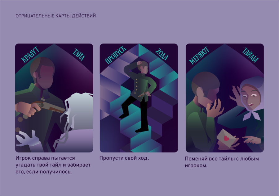 Заключительный этап: Если игрок собрал все три элемента для разгадки тайны карт (например, определенные карты судьбы или тайлы), он может объявить о своей попытке разгадки. Игра заканчивается, когда один из игроков успешно разгадывает тайну или когда исчерпаны все тайлы.