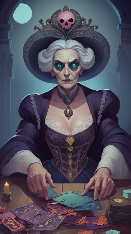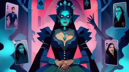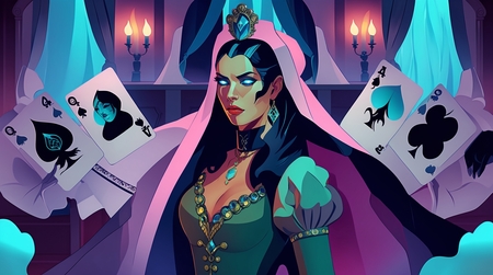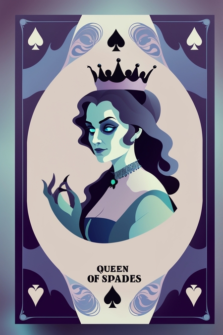 Реалистичный образ графини на карте пиковай дамы. Генерация Leonardo AI. Без референса.