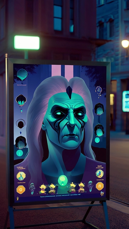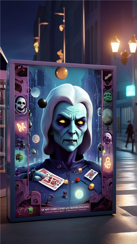 Промпт: Generate a mocap of a promotional poster for a board game with a creepy atmosphere, night city