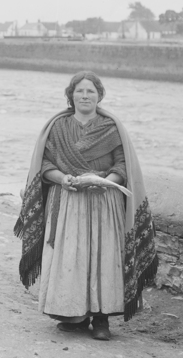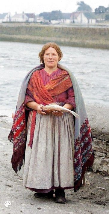 Голуэйская шаль на жене рыбака, Голуэй, Ирландия, 1905 г/раскрашенный нейросетью вариань