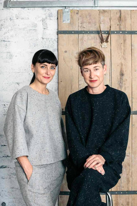 Дизайнеры Эйбхеанн Макнамара и Триона Лиллис в одежде своего бренда: The Tweed Project, 2020