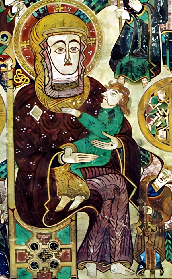 Один из немногих сохранившихся источников 8 века: Книга Келлс. Мы не можем полностью полагаться на достоверное изображение одежды на её страницах, так как наравне со святыми там изображены и совсем мифические существа, например, единороги. Однако, смотря на иллюстрации, мы можем выявить некоторые общие принципы того, как одевались люди в то время.
