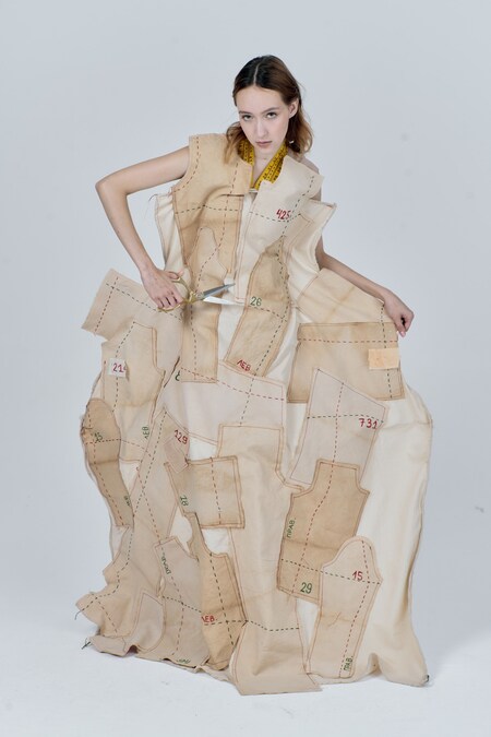 Моя идея основана на цикличности истории Дома Мод на Петроградке. Концепция называется «По старым лекалам». Это о том, как можно возродить нечто, созданное в прошлом. В Доме Мод разрабатывались индивидуальные лекала для клиентов, отражающие их уникальность — это всегда яркие и модные вещи, которые хочется вернуть в современность. На основе этих старых форм, используя старые лекала как ориентир и вдохновение, всегда можно создать что-то новое.