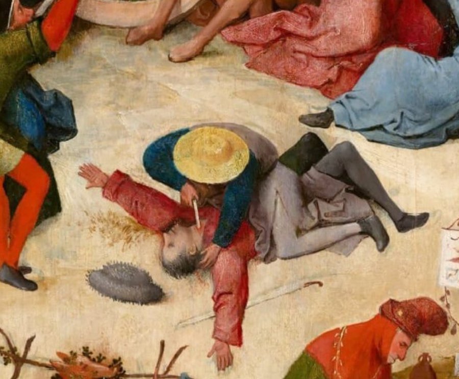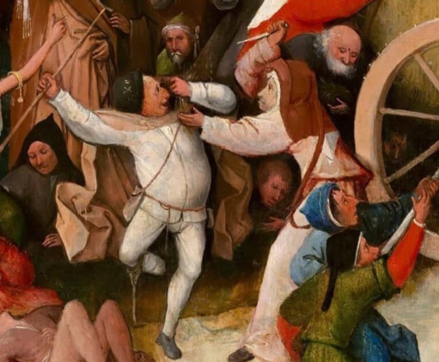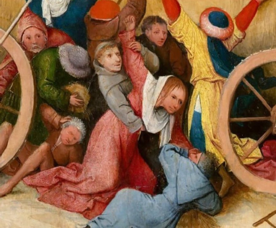 В Нидерландах говорили, что у человека «табурет на голове» — это означает ярость. Босх напрямую изображает табурет на голове одного из героев.