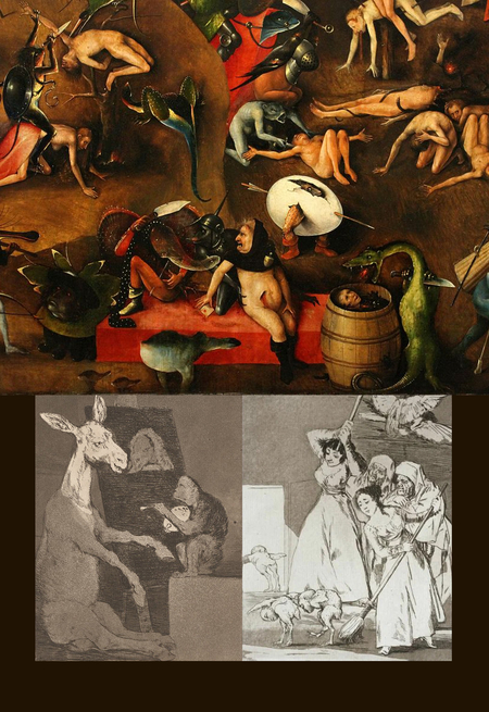 Иероним Босх и Франсиско Гойя — мастера, жившие в разные эпохи, но одинаково сильно проявлявшие интерес к человеческой «внутренности». Оба художника создавали произведения, которые впоследствии стали знаковыми для своего времени. Художественные творения сохраняют свою притягательность и в настоящий момент, приковывая взгляд современного зрителя своей мрачной символикой и смелым изображением темных сторон человеческой натуры.