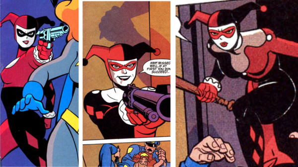 1/ Приключения Бэтмена, 1994 г. 2/ Харли Квин, С3, № 26, 2016 г. 3/ Харли Квин, С4, № 5, 2021 г.