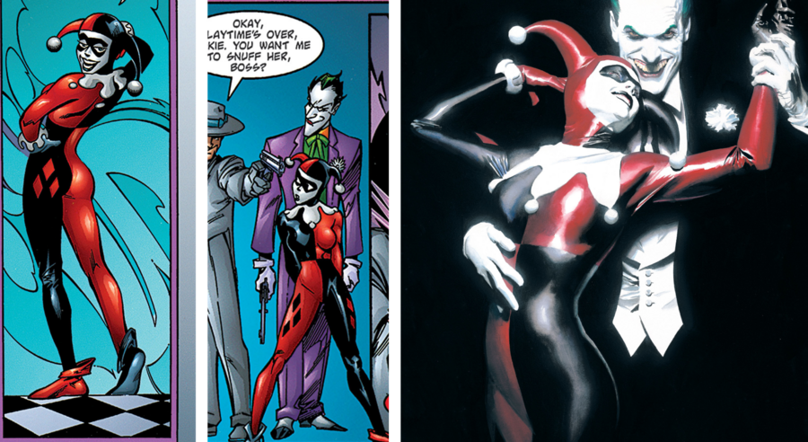 Образу Харли потребовалось около 10 лет, чтобы прийти от амплуа девушки Джокера к независимой героини. Изначально до 2000 г. все повествование было сконцентрировано только на взаимоотношениях Харли с Джокером, однако с получением сольного комикса ситуация начала меняться. И хотя в первой серии больше половины эпизодов все равно презентуют тему непростых взаимоотношений этих двух героев, видно как Харли развивается как личность. Читатель видит как она, к примеру, перестает вестись на уловки и манипуляцию, заводит друзей в лице Ядовитого Плюща, как Джокер становится не любовником к которому Харли вечно возвращается, но скорее главным ее антагонистом. Все это позволило с каждой последующей серией (2/¾) все меньше и меньше акцентировать внимание на взаимоотношениях бывших союзников, и все больше развивать Харли как отдельную героиню: со своими приключениями, с новым друзьями, с новыми любовниками.