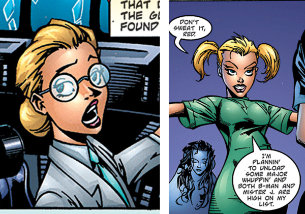 Что касается образа: изначально он становится визуально гораздо младше, чем в ранних сериях, пропадает серьезность, мужественность, грациозность Харли, однако в последних выпусках образ все же возвращается к первоначальным истокам.