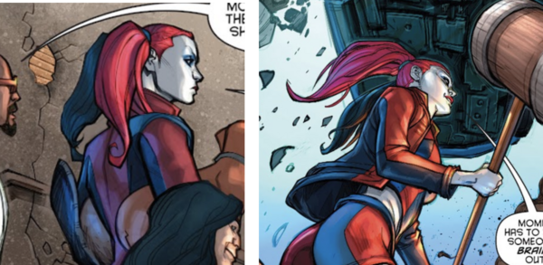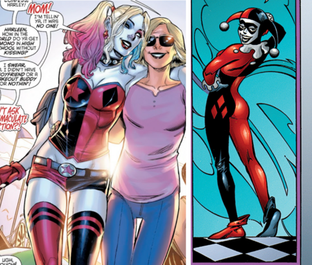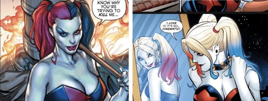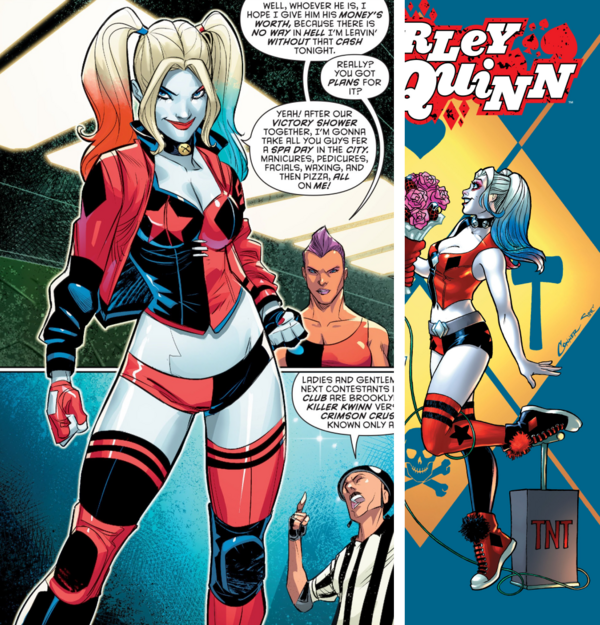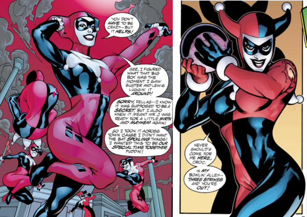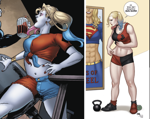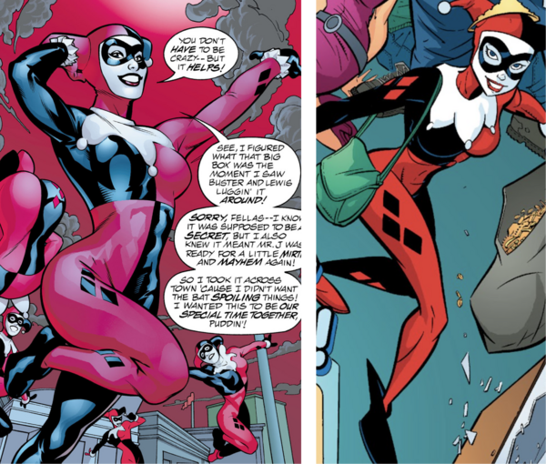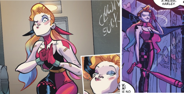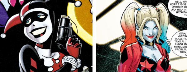 Ее фигура становится более реалистичной, но сам образ за счет яркой и новой рисовки становится более молодежным и в некоторых случаях Харли больше похожа на тинейдежера, чем на девушку которая прошла огромный путь становления: от страшных и абьюзивных отношений с Джокером до соединения с истинным Я.