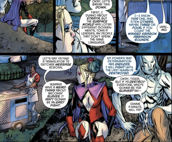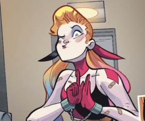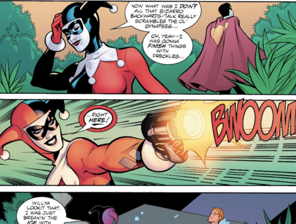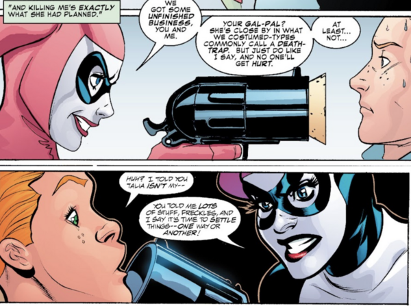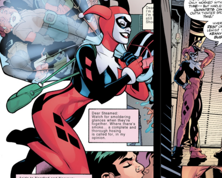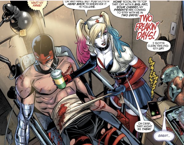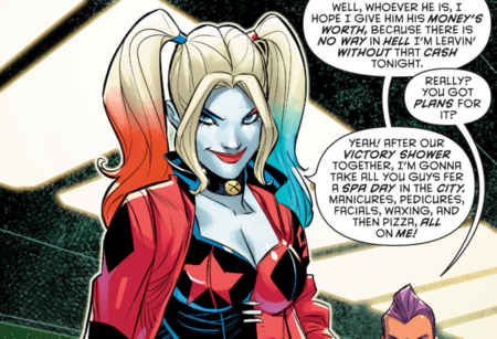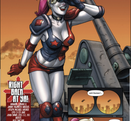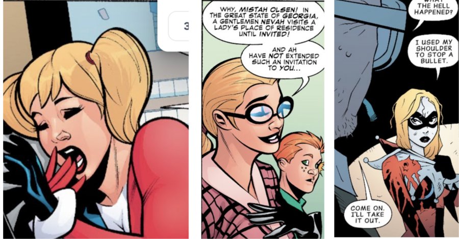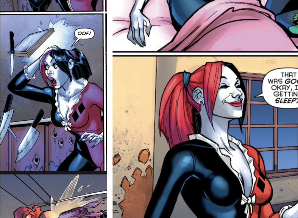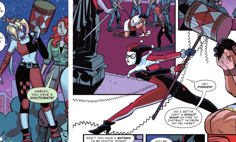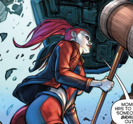 В НОВЫХ КОМИКСАХ ХАРЛИ ВЫГЛЯДИТ БОЛЬШУЮ ЧАСТЬ ВРЕМЕНИ ГОРАЗДО МОЛОЖЕ И МЕНЕЕ СЕРЬЕЗНЕЕ, ЧЕМ В ЕЕ ПРЕДЫДУЩИХ ВЕРСИЯХ.
