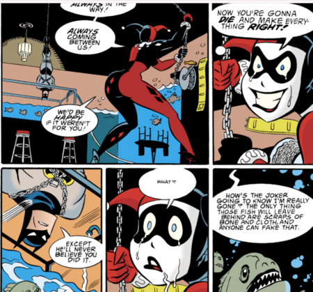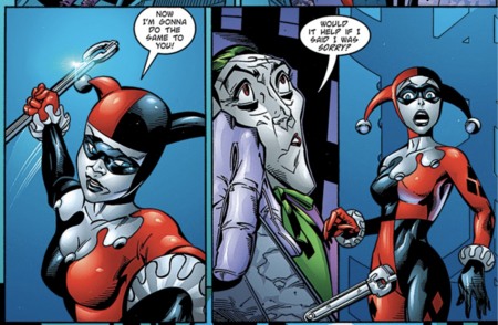 3/ ПОПЫТКА ВЫЙТИ ИЗ ОТНОШЕНИЙ, КОТОРАЯ ПОКА ЧТО ЗАКАНЧИВАЕТСЯ ПРОВАЛОМ, НО КАК МИНИМУМ ХАРЛИ К 1999 УЖЕ СОВЕРШАЕТ ПОПЫТКИ ПОЙТИ ПРОТИВ ДЖОКЕРА.