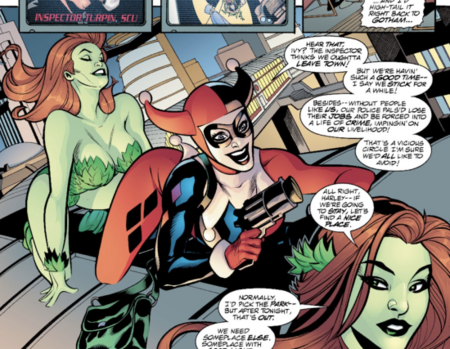 Именно Ядовитый плющ выступает против отношений Харли и Джокера, и пытается наставить подругу на путь истинный.