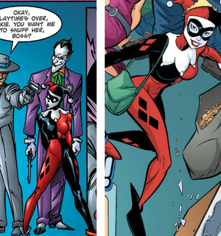 Почему именно они? Первые 3 комикса — это первые появление персонажа в целом в комиксах, где рассказывается важная предыстория Харли Квин, также раскрывается основной конфликт с Джокером, а серия «Харли Квин» является сольным проектом по этому персонажу, соотвественно максимально наглядно позволяет отследить эволюцию Харли. И даже имея промежутки в повествовании, все равно наглядно показывает изменения и костюма, и контекста, и в целом образа девушки.