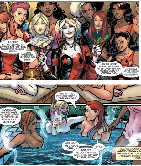 В четвертой серии комиксов Харли Квин, едва ли найдутся эпизоды с Джокером. Весь фокус смещается на отношения Харли с Ядовитым Плющом и ее путешествиях.