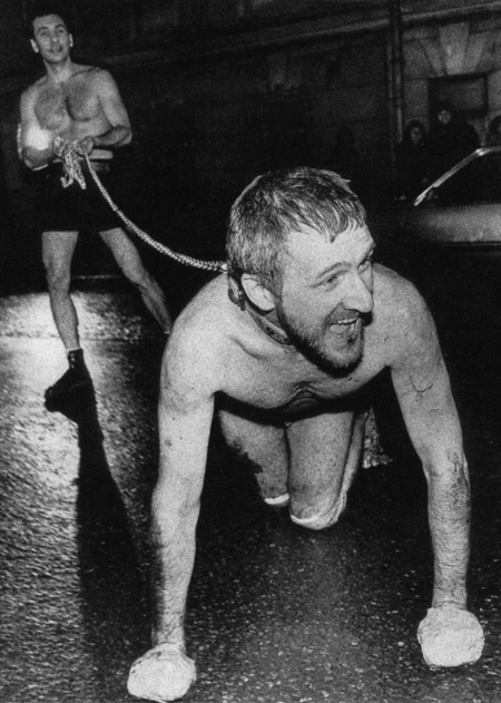Народный артист СССР Евгений Лебедев в роли лошади. БДТ. 1975 Художник Олег Кулик в образе человека-собаки. 1994