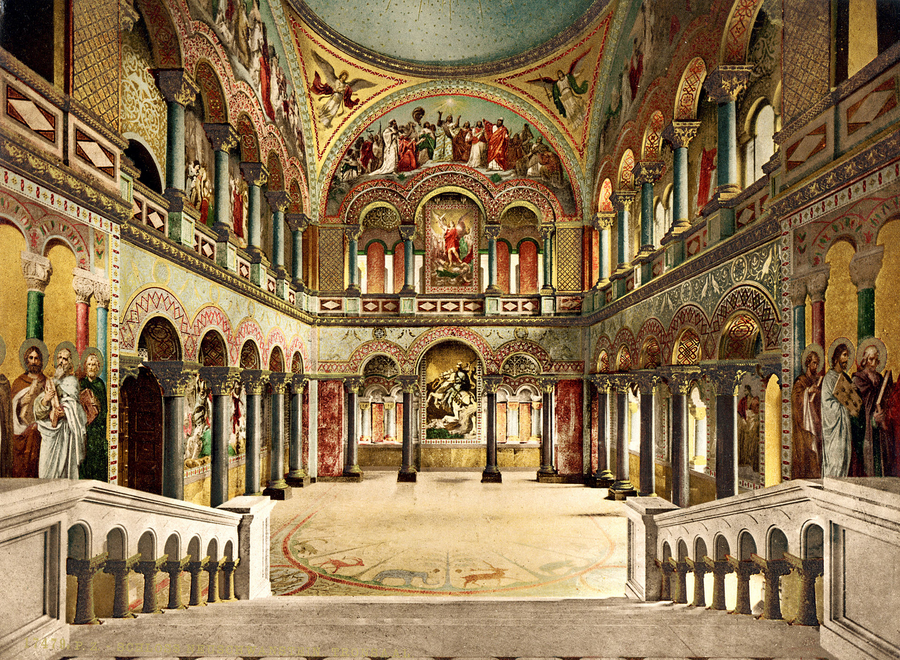 Нойшванштайн, фотохромные гравюры конца XIX века, Германия. 1. Нойшванштайн, тронный зал. 2. Нойшванштайн, гостиная. 3. Нойшванштайн, кабинет.