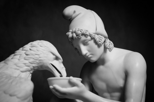 В качестве последней приведенной в пример скульптуры я решила взять «Ганимед, кормящий орла» Бертеля Торвальдсена. Она отображает сцену из древнегреческого мифа о Ганимеде, прекрасном юноше, которого Зевс похитил, приняв облик орла, чтобы сделать его виночерпием богов на Олимпе.