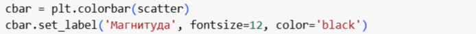 Первая часть добавляет цветовой градиент точкам на графике, вторая позволяет создать легенду по значению магнитуды в правой части графика.