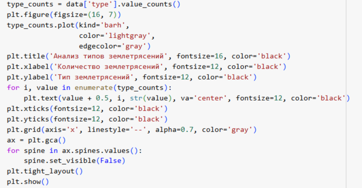 Серые приглушенные тона мне показались идеальным вариантом для работы по землетрясениям. Для меня эта стихия ассоциируется с камнями и гористой местностью, а также разрушенными бетонными постройками, городами, поскольку речь в этом анализе пойдет совсем не о легких встрясках, именно поэтому для оформления я выбрал эти объекты и цвета.