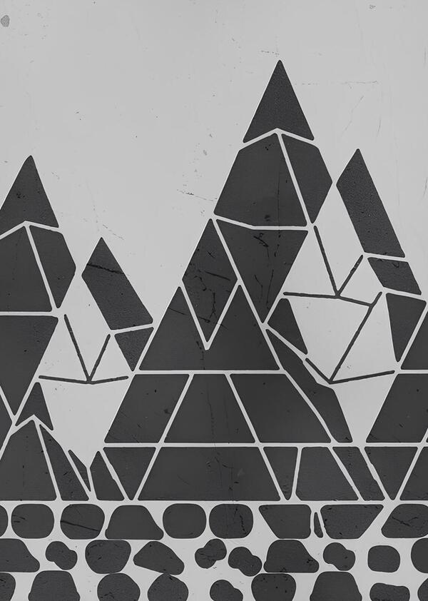 Промпт: Gray minimalistic decorative graphic pattern of mountains and rocks made with fillings