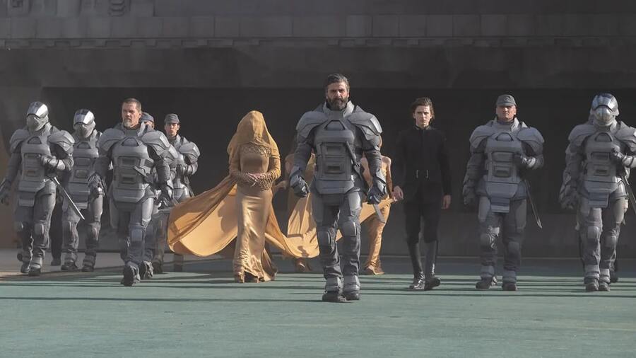 Армейские мундиры и парадные доспехи Атрейдесов вдохновлены средневековыми рыцарями, особенно орденом тамплиеров. Их броня сочетает в себе элементы традиционного рыцарского обмундирования с футуристическими материалами, создавая образ благородных воинов будущего.