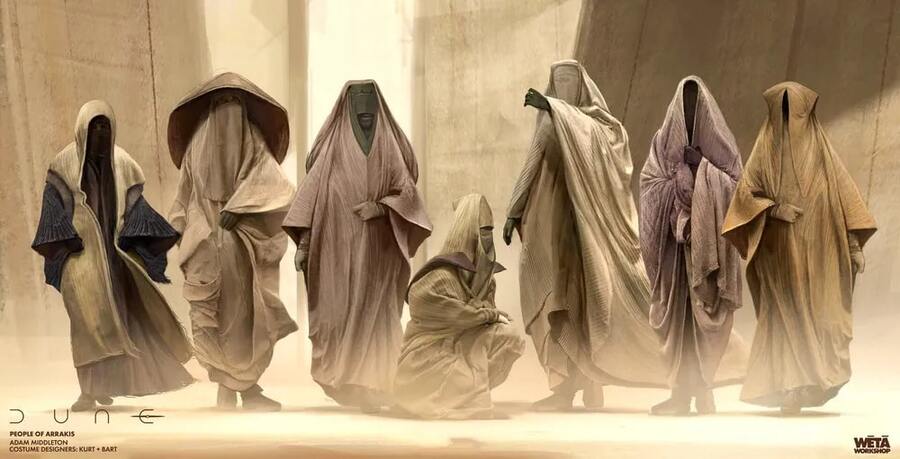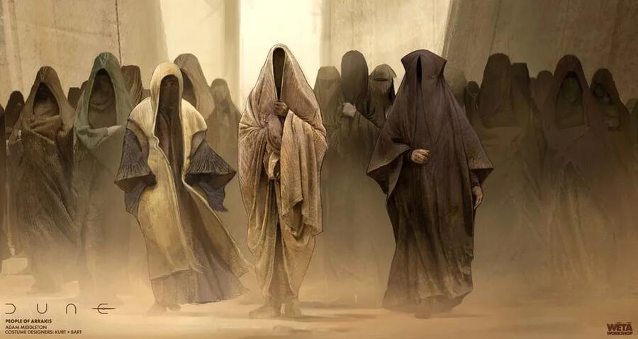 В фильмах «Дюна» (2021) и «Дюна: Часть вторая» (2024) фримены — коренные жители Арракиса — представлены в костюмах, подчёркивающих их глубокую связь с суровой пустынной средой, коллективную идентичность и скрытую индивидуальность.