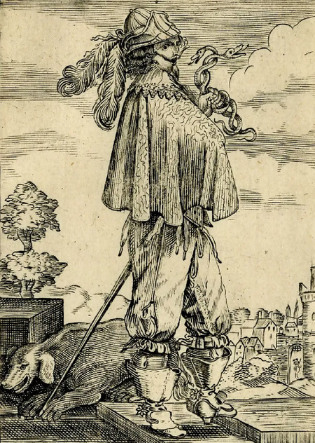 Французский график Абрахам Босс тоже прибегает к адаптации образов-воплощений смертных грехов к реалиям времени. Перед нами серия гравюр, где порок персонифицирован в виде молодых мушкетёров (впервые все грехи воплощены в виде мужчин).