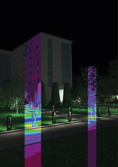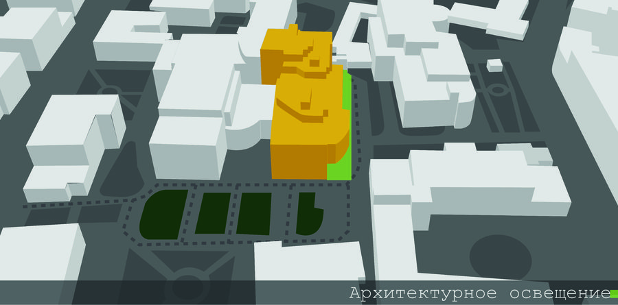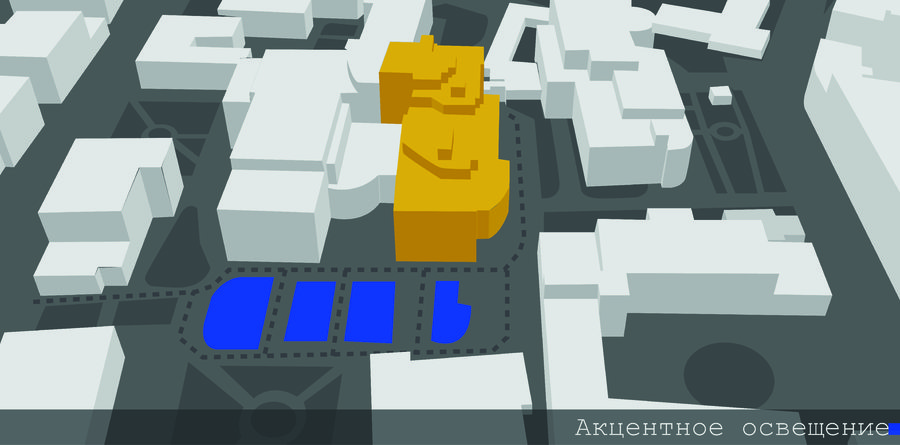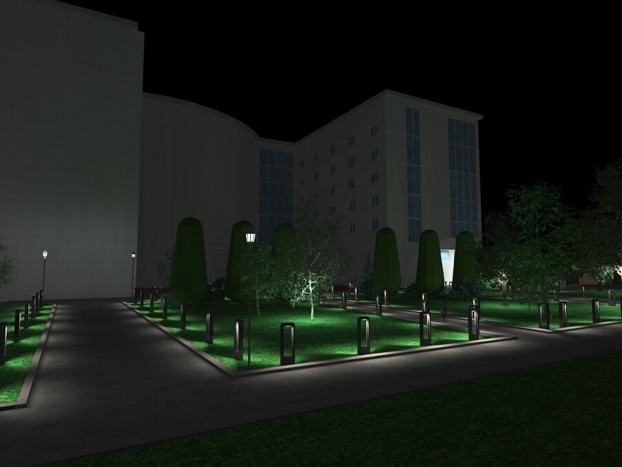 - Создать запоминающийся фирменный стиль сквера и здания источниками света.