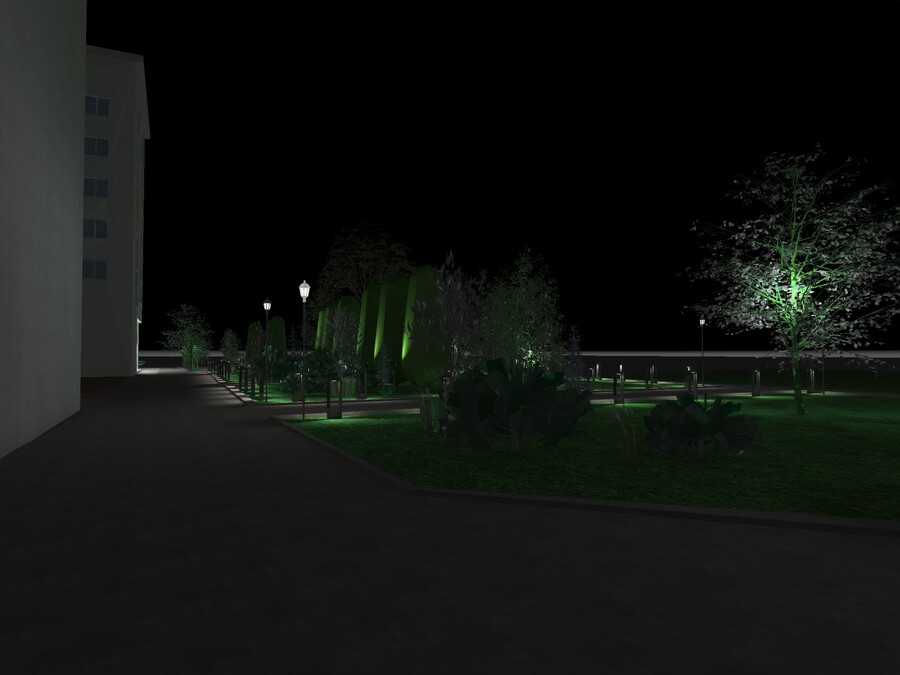 В заключение, разработанный проект создает комфортную и безопасную среду. Эффективная система освещения обеспечивает яркую и равномерную подсветку. Данная концепция энергоэффективна, благодаря использованию LED-светильников и управлению освещением по расписанию. В результате, проект помогает улучшить видимость, акцентирует внимание на дизайн и эстетику территории за счет освещения, чтобы сквер стал как и функциональным, так и красивым местом. В итоге, данный проект способствует развитию общественных пространств и улучшению качества жизни людей.