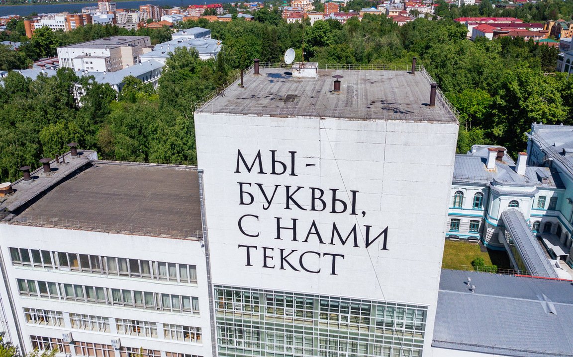 Текст входит в городскую среду в форме стрит-арта и становится частью архитектурной среды и инфраструктуры.