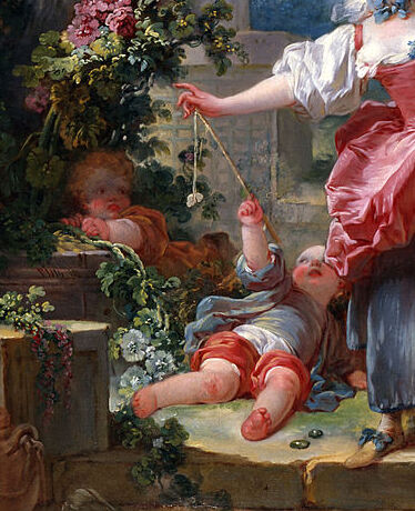На этих картинах Фрагонар пишет ножки детей невинно-розывым. Он будто намекает — пока эти ножки не видели никаких трудностей. Эпоха рококо редко подразумевает какие-либо страдания, кроме любовных. Герои живут в идеальном мире и не беспокоятся ни о чем. Это отчетливо видно именно на изображениях беззаботных детей.