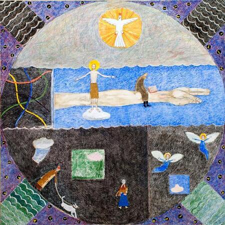 Библейские сюжеты — Многие художники аутсайдеры обращаются к библейским историям, переосмысливая их на свой лад. Сцены из жизни Иисуса Христа, рассказы о создании мира, райский сад, потоп, а также изображения ангелов и святых — все это может быть представлено в необычной и оригинальной манере.