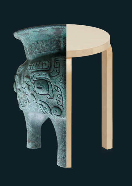 В качестве самого яркого сравнения, можно привести самый популярный в мире табурет — «Stool» Алвара Аалто, предельно простой, устойчивый и функциональный. Это не является заимствованием из китайской культуры и не повторяет треножник, однако доказывает, что «триединство» в данном контексте, популярно и в современности.