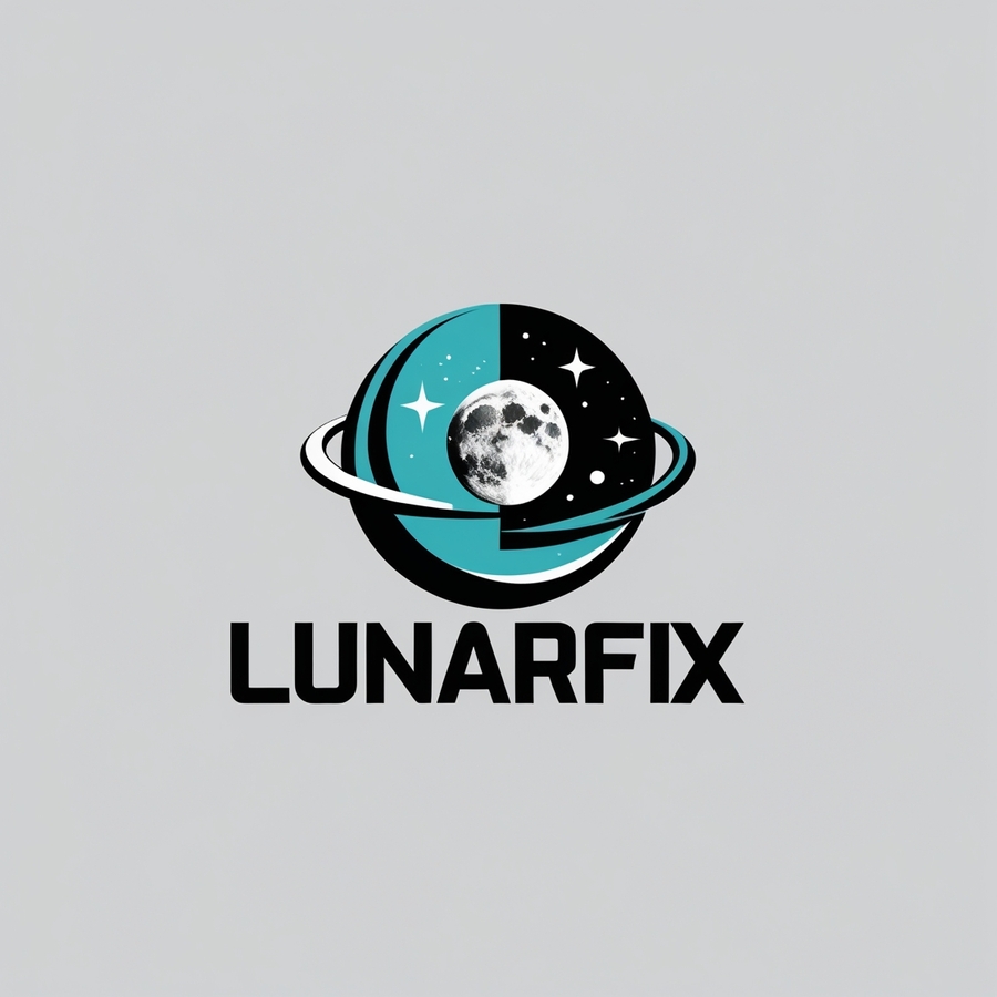 Промт: design a modern and sleek logo for the company «Lunarfix», which focuses on space repairs. The logo should reflect themes of space and technology, incorporating elements related to the moon and repair work. Use the company’s primary colors: turquoise, white, gray, and black. The logo should be easily recognizable and memorable, emphasizing innovation and reliability. Consider including a stylized image of the moon or a spacecraft, along with a font that conveys modernity and professionalism.