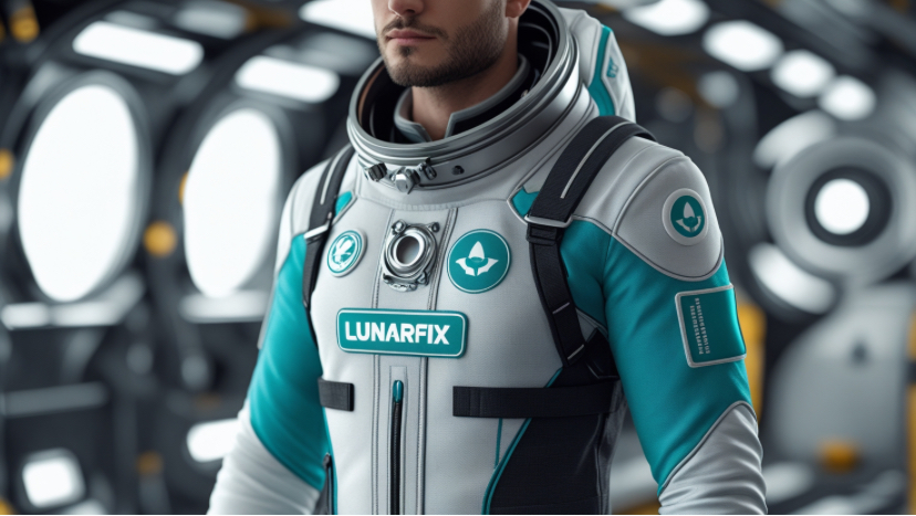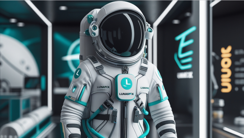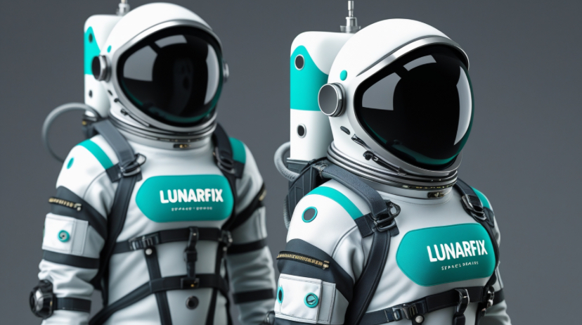 Промт: create a uniform for the company «lunarfix», which is engaged in space repairs. make a unique space suit, decorated in accordance with the corporate palette and company name. The primary colors for the brand are turquoise, white, gray, and black. The palette should evoke a sense of innovation, reliability, and professionalism, suitable for a company involved in space repairs.