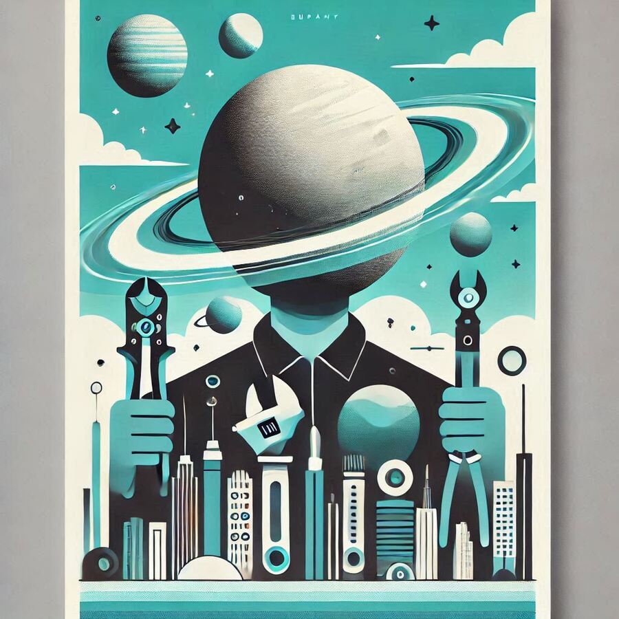 Промт: create an advertising cover that can be associated with the company «lunarfix». There may be planets on it, there may be tools that workers use to repair the space. Use only the brand’s palette, namely turquoise, gray, white and black. Make this poster. dedicated to a modern company working for the benefit of space and the future, they looked fashionable and minimalistic.