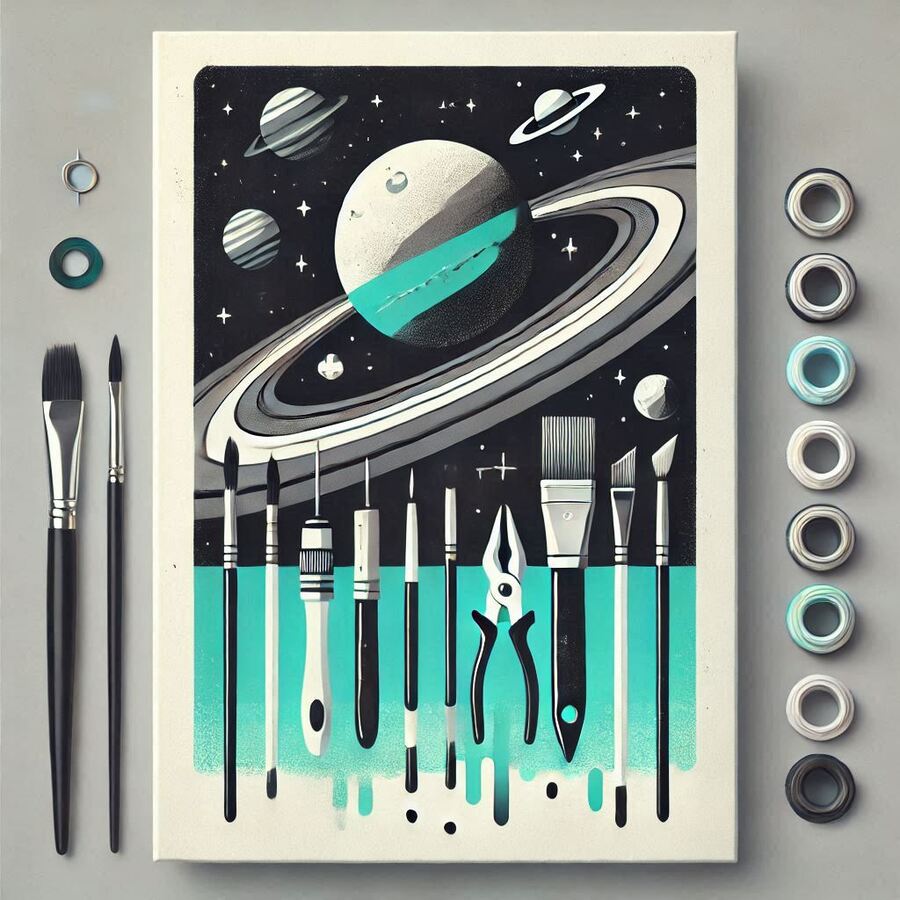 Промт: the primary colors for the brand are turquoise, white, gray, and black. The palette should evoke a sense of innovation, reliability, and professionalism, suitable for a company involved in space repairs.