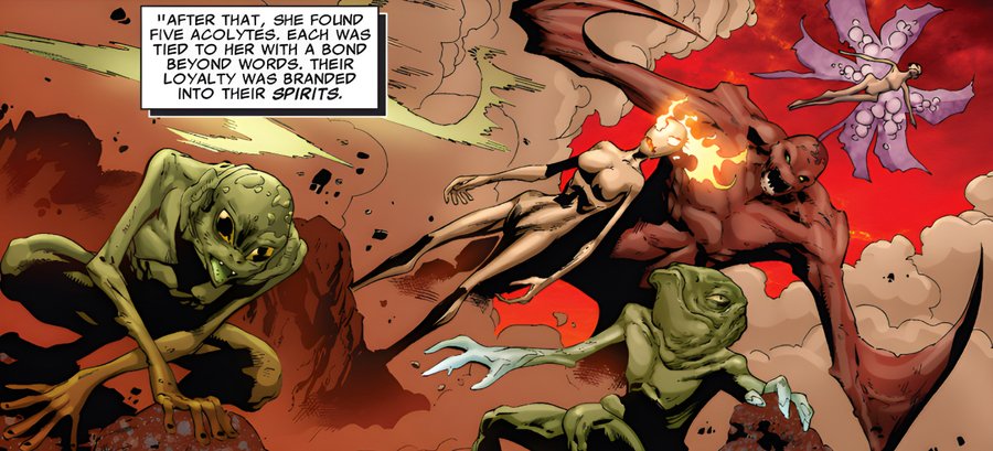 Миллион лет назад у Феникса также был человеческий хозяин. Огневолосая помогла Мстителям каменного века одолеть Небожителя, неконтролируемое существо.