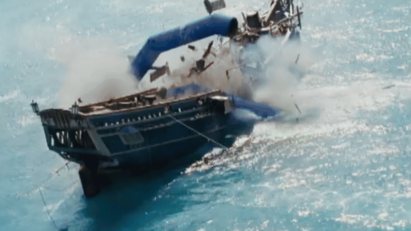 Практические эффекты раскалывающейся древесины и брызгов, работа каскадеров, совмещались с компьютерной графикой. Композеры наслаивали CG щупальца на сцены, добавляя дополнительный мусор, дым, тела, компьютерную воду.