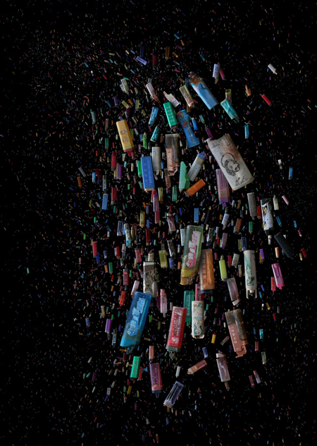После Грегга Сигала, обращающего внимание на индивидуальный вклад в проблему отходов, работа Мэнди Баркер переносит нас в глобальный контекст — на берега океанов, загрязнённых тоннами пластикового мусора. Собирая отходы с пляжей по всему миру, Баркер создаёт впечатляющие композиции, которые напоминают подводные пейзажи, но при ближайшем рассмотрении раскрывают ужасающую реальность: пластик, ставший частью морской экосистемы.