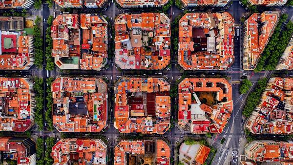Сетчатые планировки имели место быть не только во времена «древнего мира», но и в Европе в XIX веке, во времена индустриализации. Именно тогда был осуществлен проект архитектора Ильдефонса Серда: «Район „Эшампле“ (кат. Eixample, Новый Город) возник в результате промышленной революции XIX в. в Барселоне.» Он был призван расширить территорию города и улучшить санитарные условия.