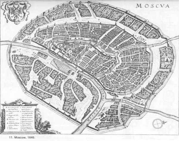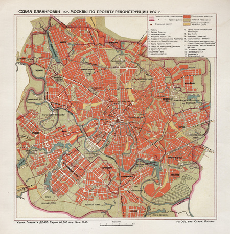 Карта средневековой Москвы, XVII в. // Схема планировки Москвы, 1937 г.