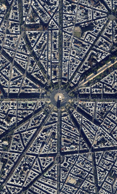 В середине XIX века модель центрической планировки применил барон Осман в проекте по реконструкции Парижа. Его реформы «во многом определили современный облик Парижа», радикально изменили структуру города, превратив хаотичную средневековую сеть узких улиц в упорядоченную радиальную систему, которая связала ключевые площади, бульвары и здания. Центральным элементом этой структуры стали площадь Звезды (ныне площадь Шарля де Голля) и Елисейские поля. Период градостроительных работ получил название «османизация Парижа» и широко известен во всем мире.