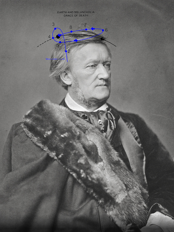 Тема Вагнера играет в фильме 9 раз. Когда она звучит в восьмой раз, зритель наблюдает столкновение планет, что и изображено на восьмой точке схемы. Девятый раз, последний, звучит на финальных титрах, после смерти планет: ничего больше нет, остался лишь напев конца.