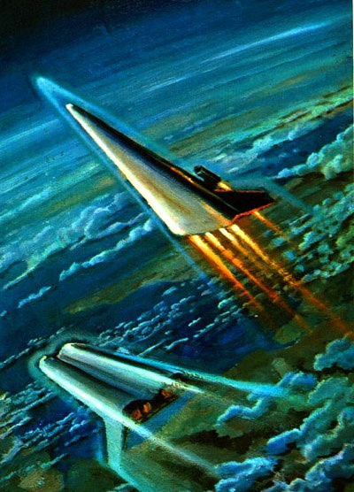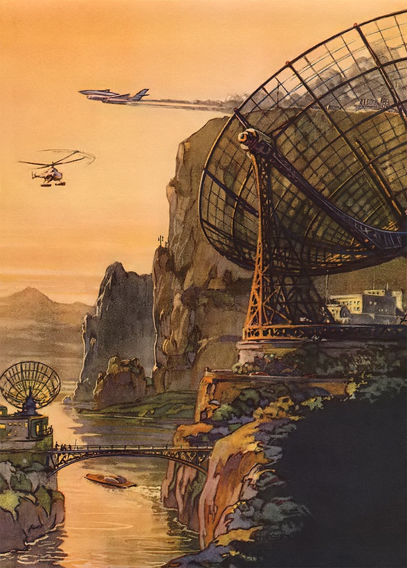 Советский ретрофутуризм 40-50 годов. Художник Николай Михайлович Кольчицкий рисовал для журналов «Техника — молодёжи», «Огонёк», «Юный техник», иллюстрировал книги, рассказы, очерки.
