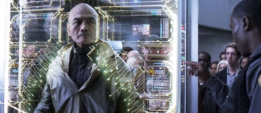 После активации звонка через ладонь главный герой прикладывает руку к стеклянной поверхности, где отображается видеозвонок с его коллегой. Эффект взаимодействия руки с экраном был создан командой Senate Visual Effects.