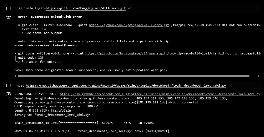 Затем пошла установка библиотек датасетс и обучение модели, а после генерация картинок через промпт!