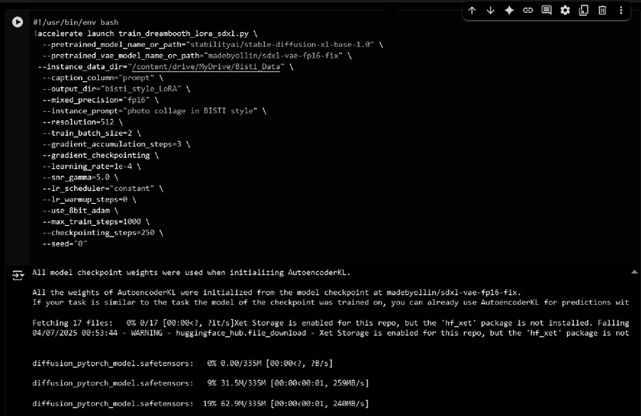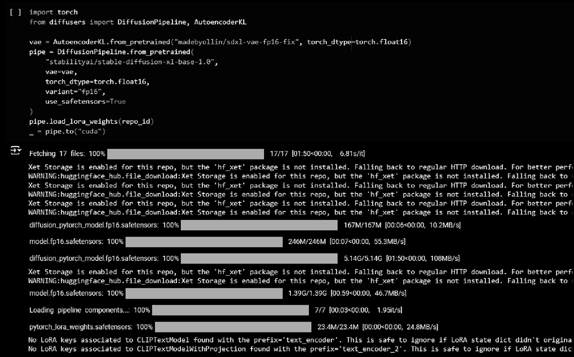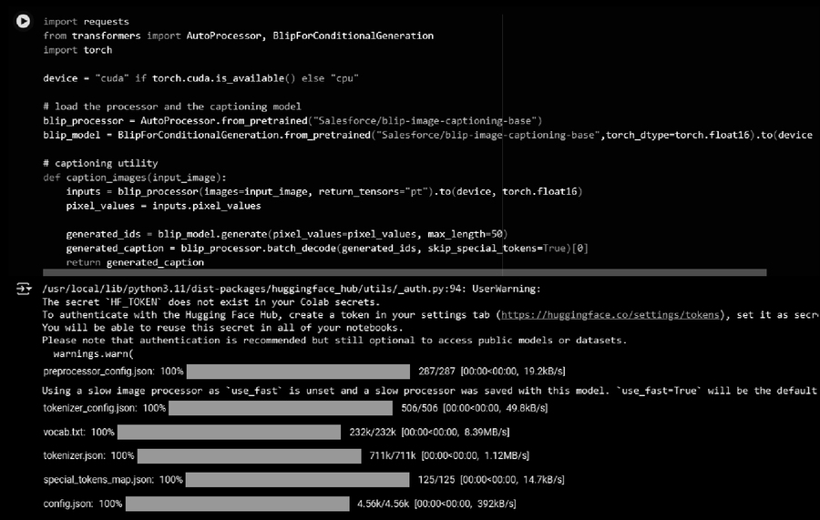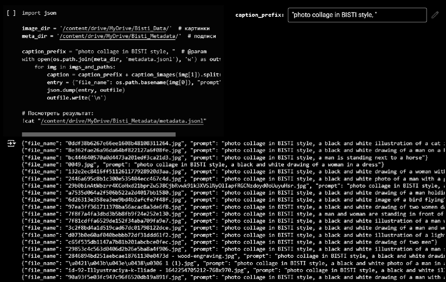 Потом я подключила модель BLIP для создания подписей к картинкам, создала файл metadata и подключила токен с hugging face